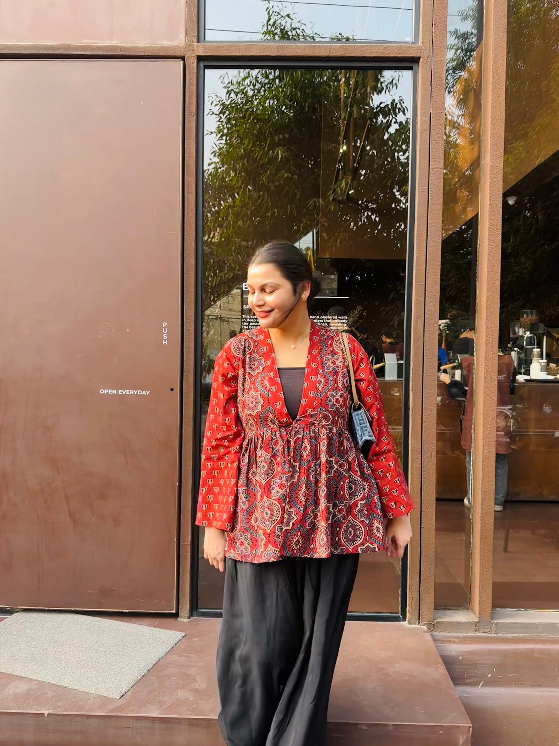 Crafted in 100% pure cotton and finished with authentic Ajrak print, this short kurta is designed for comfort that still looks intentional.